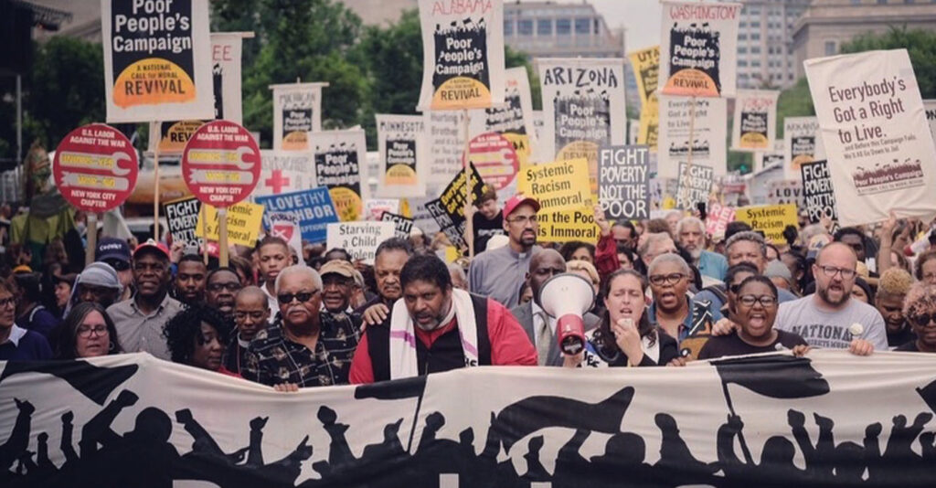 This is why our campaign has committed to holding a Mass Poor People’s and Low-Wage Worker’s Assembly in Washington, DC, on June 29th. We are bringing the everyday people who’ve demanded better wages from their bosses to Washington and insist that Republicans, Democrats, and Independents make clear what they will do to address the needs of 135 million Americans who are living on the edge in the richest nation in the history of the world. And we are committing to go home to our communities and reach 15 million of the unlikely low-income voters with the message that they have power in 2024. If they show up, especially in seven key states, their votes will decide the outcome in 2024. When they do, they will be able to help shape the reconstruction of an American democracy that works for all of us.