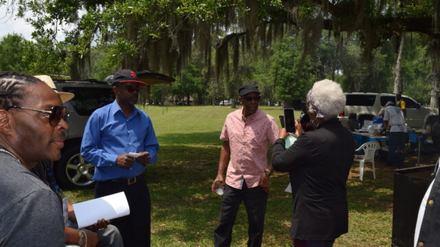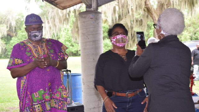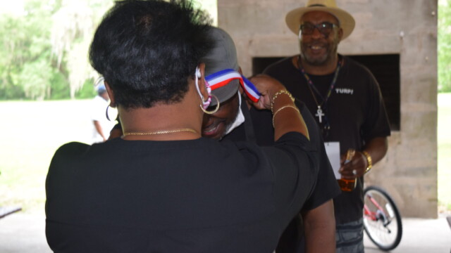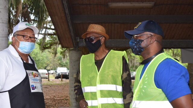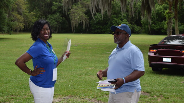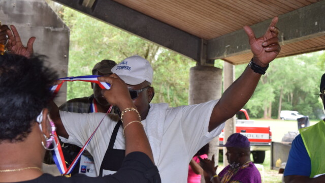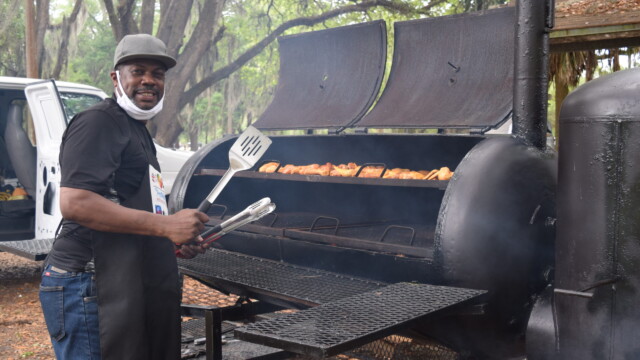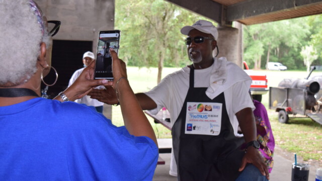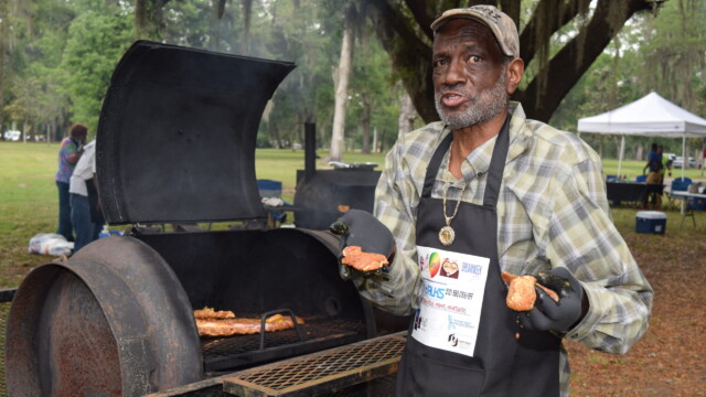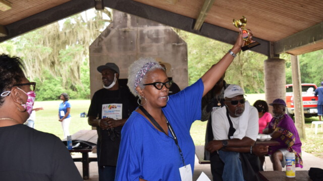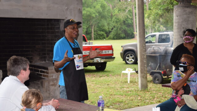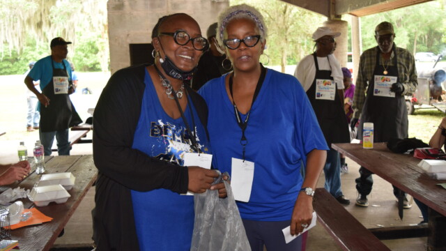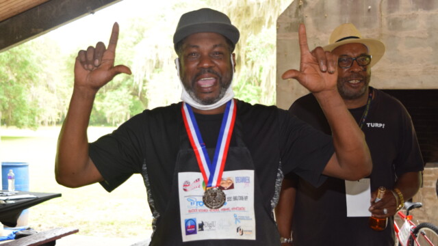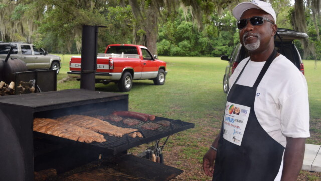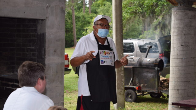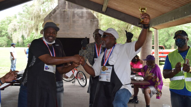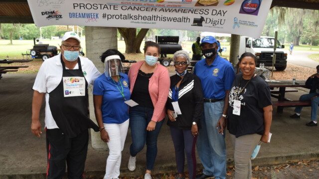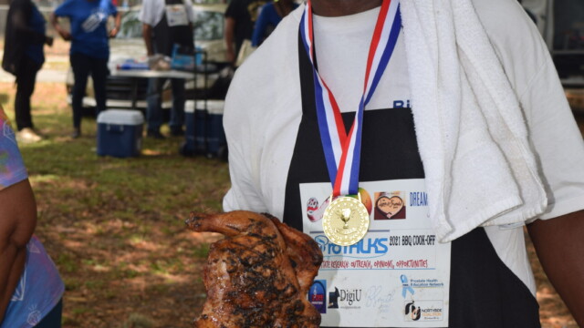 The Protalks grant is a 10-month project affiliated with the University of Florida Cares2 team that seeks to address prostate cancer research and health disparities in the Black community of Duval County. Engagement includes learning to take steps to improve prostate health outcomes for males age 18 – 100. The University of Florida CaRE2 Health Equity Center partnership seeks to advance science that improves cancer health equity among Blacks and Latinos in Florida and California. Shown are the winners, Clarence Dingle (Silver/2nd place), John ‘Gator’ Muse (Bronze/3rd place) and Chris ‘Big C’ Lee (Gold/1st place winner) and grill master awardee.