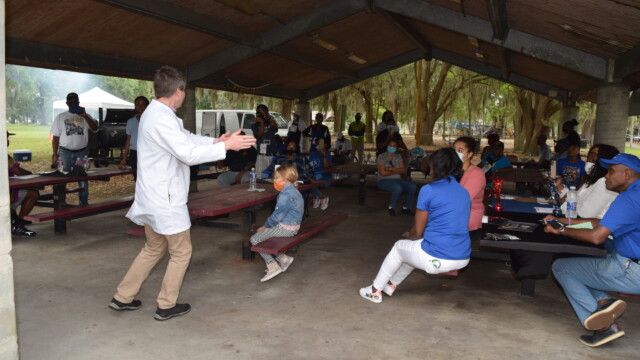 Many of the men were unaware of the prostate purpose, location and testing. “My grandfather had prostate and it just crept up on him. That’s the reason I’m scared to get tested,” said Kwame Jones. To alleviate prostate cancer testing distrust, methods and facts, Baptist Health Urologic Oncologist Dr. Jonathan Melquist, MD spoke to the crowd, “I enjoy events like these where the camaraderie is connected because men want answers,” said Dr. Melquist.