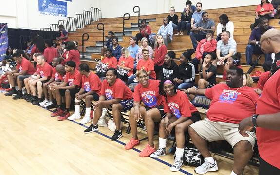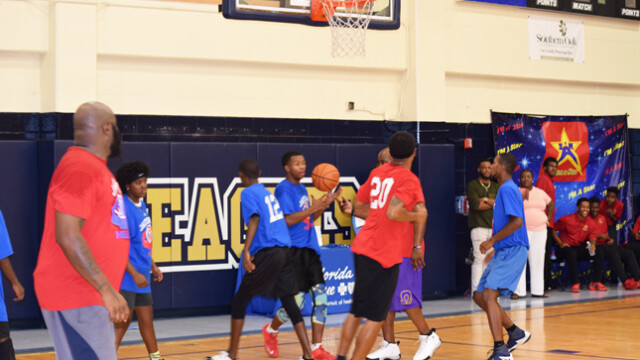 Hundreds of First Coast residents came out in the rain to see a showdown between celebrities and high school all stars last Saturday night. The High School All Star team was comprised of players from Raines, Ribault, Jackson and Englewood, coached by former Mayor Alvin Brown, claimed the win 61-54.