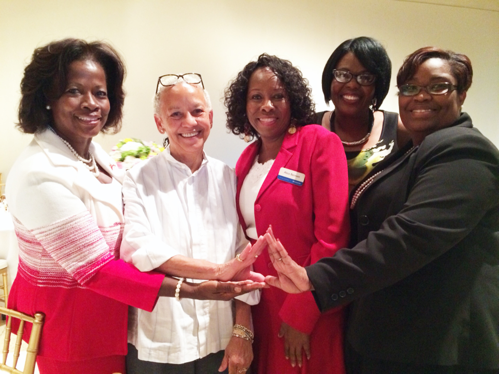 Noted poet Nikki Giovanni visited Jacksonville with an invitation by Duval County Schools to be the Keynote Speaker for Delta Sigma Theta’s Professional Development Literacy Expo on July 16th. The theme for the event was, A World of Poetry: Lunch with Nikki Giovanni, was held at the Cummer Museum of Arts & Gardens. The sorority’s alumni Chapter President Veronica Tutt presented her soror with a love token on behalf of the local chapter. Pictured l-r with poet and author Nikki Giovanni are Delta Sigma Theta’s Jacksonville Alumni Chapter Arts and Letters committee members: Veronica Tutt, Alice Bennett, Sandra Hull-Richardson and Duval County Schools Director Sonya McCain.