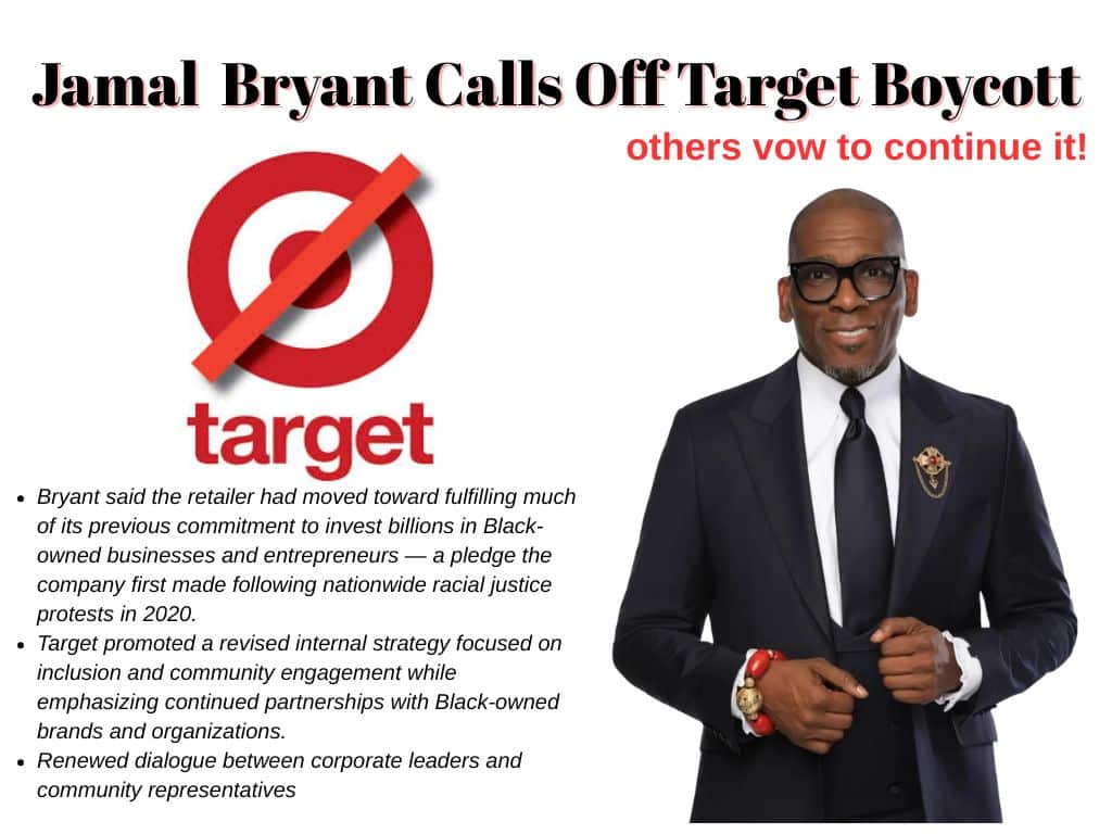 The Rev. Jamal Bryant announced Wednesday that a nationwide boycott of Target he helped lead for the past year has come to an end, declaring the consumer protest a “victory” after the retail giant recommitted to some diversity and community investment initiatives that had been scaled back earlier.
