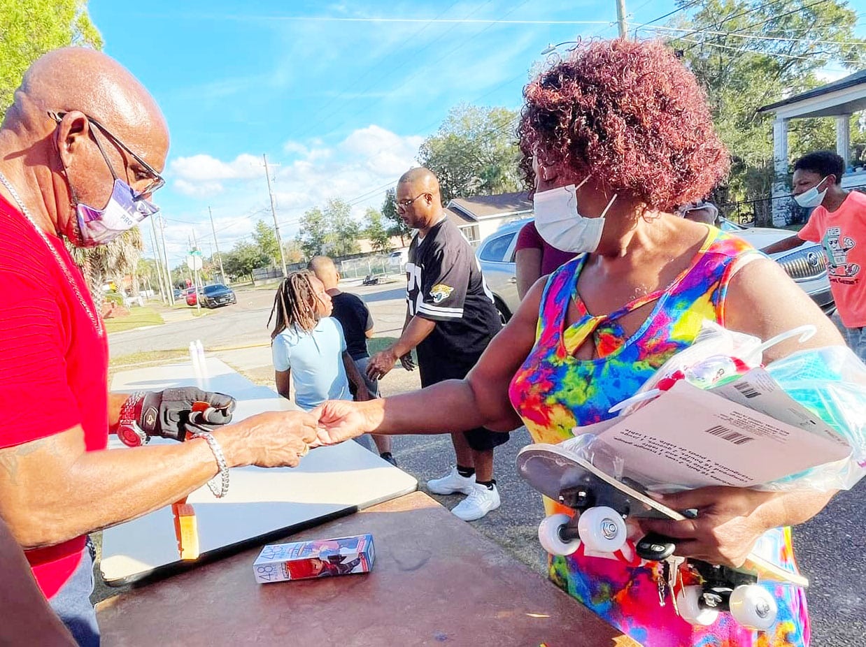 Organizations throughout Duval are on high alert with extra generous gratitude for charitable donations to friends, families, food banks, children centers, the lonely and/or isolated. In the North Shore area Gateway to Heaven Christian Church (GTHCC), recently held their inaugural “Gospel around the Grounds, Christmas Toy Giveaway,” on Saturday, December 18, 2021. Pastor Carlton Jones and his team welcomed more than 200 children throughout the North Shore neighborhood. GTHCC secured food from local suppliers and toys from Toys for Tots organization. The toys were reserved for children ages 3-months-old to 14-years-of-age. Activities also included distribution of food, monetary gifts and bicycle raffle. Near the MLK Expressway, Thunderbolt Productions held their 38th Christmas toy giveaway at New Life Community Church. Spearheaded by champion wrestler, Larry Hamilton, volunteers donated 157 gifts and seven new bikes.