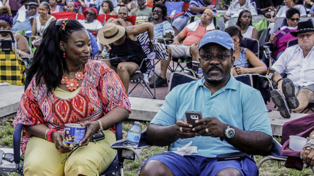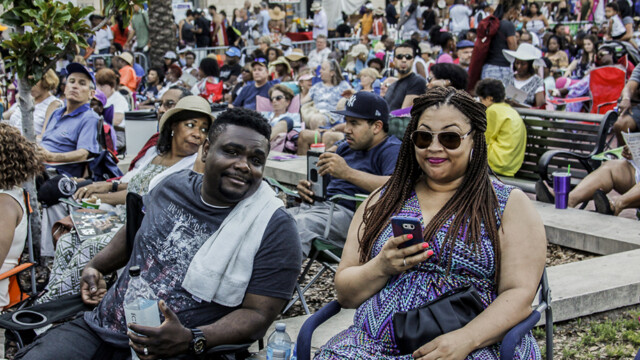The well anticipated event included the Swingin’ Stage, the Groovin’ Stage and the Breezin’ Stage all in the downtown corridor. The city’s center came alive with the sounds of live jazz greats and modern favorites. Festival goers also enjoyed local food, drinks, shopping and entertainment. Since first taking place in 1981, the festival has become one of the largest jazz festivals in the country blending both world renown acts and local artists gracing the stages. This year local jazz artist Akia Uwanda, Party in a Box with Alana Southerland, Katz Downstairs and Stank Sauce had the opportunity to showcase their talents on the main stage. The legendary Commodores closed out the Jazz Fest with their 1970’s crowd hits. Shown enjoying the festival are Louis Rollins and Patrice McClendon.