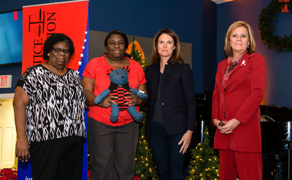 Master of Ceremonies, Julia Jenae, from First Coast News recounted that she had lost an uncle to a random act of violence and this was a time for reflection and thanks. Highlighting the agenda was JC’s volunteer, staff and friends eagerly waiting to have their picture taken with Santa!