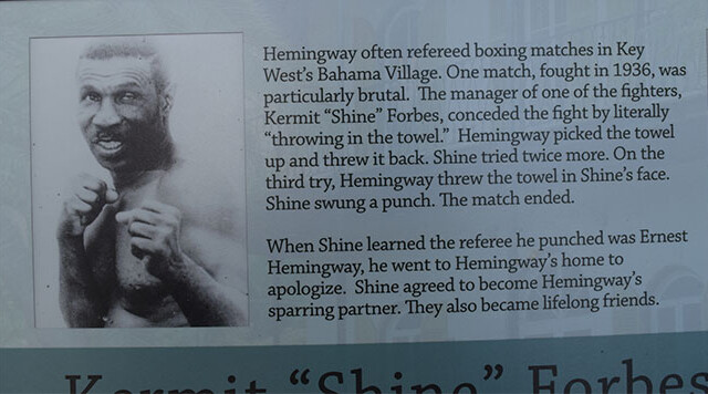 The keys are made up of five “key” islands: Key Largo, Islamorada, Marathon, Big Pine Key and the infamous Key West! Key West is the island where many travelers look forward to visiting. The Island boasts American and African American history exhibits and most of all the Ernest Hemmingway home. According to www.hemingwayhome.com: “The Hemmingway home is located at 907 Whitehead Street and nestled in the heart of Old Town Key West, this unique property was home to one of America’s most honored and respected authors. Ernest Hemingway lived and wrote here for more than ten years. Calling Key West home, he found solace and great physical challenge in the turquoise waters that surround this tiny island.” Hemingway also had a penchant for boxing and according to true events African American Key West resident Kermit “Shine” Forbes took a jab at Hemingway and became a legend. Shine passed away at the age of 84 and was quoted as saying: “That big poke I took at Ernest Hemingway? Oh man, that was the greatest thing that ever happened to me in my life, It kinda got me famous.” (see http://articles.latimes.com/2000/feb/18/news/mn-268). Key West African American Island history documents American slavery and the toll it took on America.