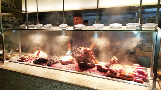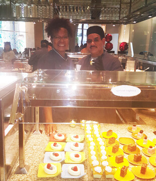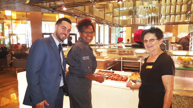 Now this next venue will have you slap your momma (not literally, but if you’re eating and she keep talking to you with morsels in your mouth, you might have to pause and say mother, “really”!) LOL…. I’m telling you, when you converse about Las Vegas, Caesars Palace is right on the tip of your tongue. No matter where you go in the world the name Caesars Palace resonates throughout the land. With a pillared décor surrounded by roman statues and gold trim we headed to Bacchanal Buffet inside the famed Caesars Palace. Walking the lobby of Caesars Palace you are greeted with upscale shopping stores, gambling parlors and people from around the world staring in awe at the beauty of the structures and the coliseum concert hall that holds court to the legendary Celine Dion and the trappings of winning the slots for millions of dollars! Bucchanal Buffet is a synonym for ‘Buffet of the Gods” and depending on how many Gods you worship, you will not be disappointed. Without delay we were whisked to a VIP table and had to sit for a few minutes to really take in the atmosphere that was opulently and creatively adorned. The Gods consisted of a “Luxe, modern buffet offering 9 show kitchens and 500 daily dishes” at the buffet stations, filled with an array of delectable chow, mouthwatering appetizers and scrumptious palatable and flavorful breakfast, lunch and dinner stations. All I can say after a feast of this magnitude, is do not tarry for the Gods are awaiting your arrival! To make your reservation and for more info visit: www.caesars.com/caesars-palace/restaurants/bacchanal-buffet.