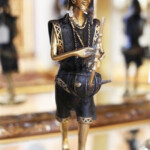There are over 2,000 pieces in the collection and approximately 300 pieces on display. The gallery-museum showcases more than 8,000 square feet of exhibition space. All pieces on display at the gallery-museum are available for purchase and the collection includes work from 29 different African countries and dozens of different tribes. The oldest pieces in the collection are more than 350 years old. The tallest bronze on display is a 12-foot tall, 700-pound sculpture of a horse and rider statue, with the horse rearing upwards on its hind legs. In addition to African bronzes, visitors to Bronze Kingdom can also view and purchase wooden and beaded African art.
