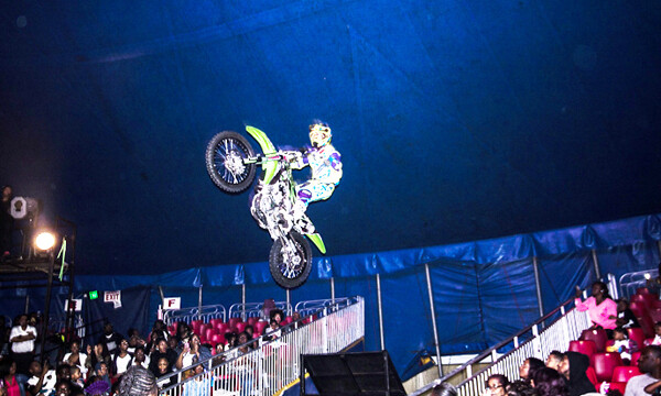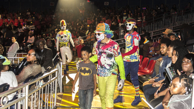 By Lynn Jones – With the recent announcement of Ringling Brothers & Barnum & Bailey Circus dismantling their big top for their last show May 21, 2017, UniverSoul Circus is gearing up to become the next greatest show on earth! This year’s big top was packed to capacity with children and families ready for the exciting, magnetic and high energy big top show! UniverSoul Circus ringmaster Lucky Malatsi took to the stage with his assistance midget man Zeke and welcomed the crowd to the big tent. UniverSoul Circus is filled with exotic animals, evil knievel daredevil motorcycle stunts, elephant rides, contortionist and circus performers from around the globe. The audience participated in an interactive soul train dance line and played toss the ball with spectators. Fresh the Clowns