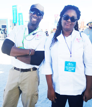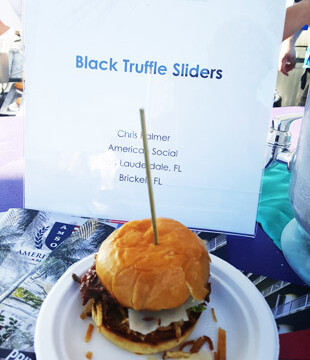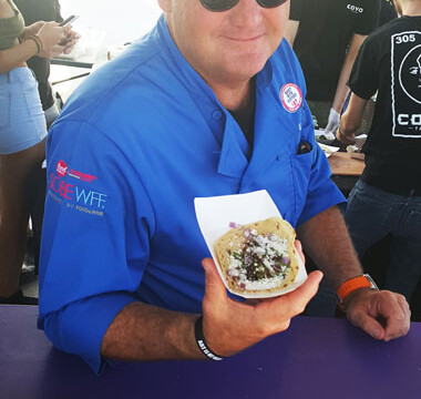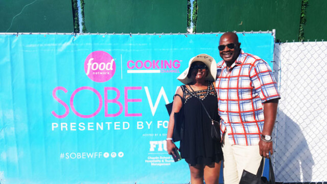 Miami Beach Lowes Hotel is the designated host hotel. Entering the lobby you never know who might meet! We met American musician, singer and songwriter Gregg Allman of the famed Allman Brothers, ready to rock and roll and taste test too! Book signings were also non-stop as Rachel Ray was eager to sign copies of her book, while Robert Irvine muscled his way to the cooking stage. We ran into Jacksonville Chef DeJuan Roy and his Bride Sharon Roy. This is Chef DeJuan Roy’s 5th year attending the festival. For over two years Chef DeJuan was featured as corporate event chef for Florida Blue’s SOBEWFF sponsored “Fun and Fit” Family event at Jungle Island. Chef DeJuan Roy is currently the executive chef of the Jacksonville, Florida’s Alhambra Theatre and Dining where he manages the culinary operations creating distinct menus for each show.