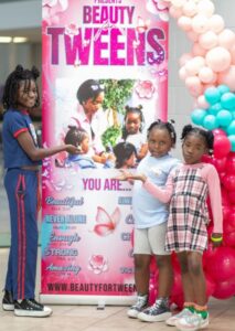 The 7th Annual “Beauty For Tweens” event, hosted by Nouvo Studio & Wellness Inc. in partnership with Woodlawn Presbyterian Church was filled with empowering workshops that taught Tween girls essential self-care, healthy beauty tips and mental health coaching. Licensed Mental Health Coaching advocates were on the northside church campus alongside the tweens with interactive sessions and Q&A dialogue. The inspiring event educated young girl attendees on maintaining natural healthy hair, nails, and overall well-being, but also cultivated a nurturing environment where every girl felt valued and confident. “Facilitators came armed with warmth and community spirit that made the event memorable,” said founder Gwen Stroud. Tweens were excited to learn new hair and beauty techniques, along with understanding their body’s structure, healthy eating habits, educational resource assistance and motivational pep talk. Workshop also delved into bullying, self-esteem attributes and dysmorphia. Additionally, each year the tweens event registers girls that require personal attention to assist with tutoring, housing and family mental health disputes. Shown are the tweens completing an interactive beauty challenge.
