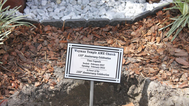 The highlight of the day was when members gathered to bury a time capsule filled with items from each of the church’s ministries, to be opened 15 years from now when the church will be 150 years old. The Anniversary celebration culminated on Sunday with a worship service with guest speaker Bishop Frank M. Reid, III of Baltimore, Maryland, and guest singer Stellar award-winner and Grammy nominee, Gospel recording artist Pastor Beverly Crawford.